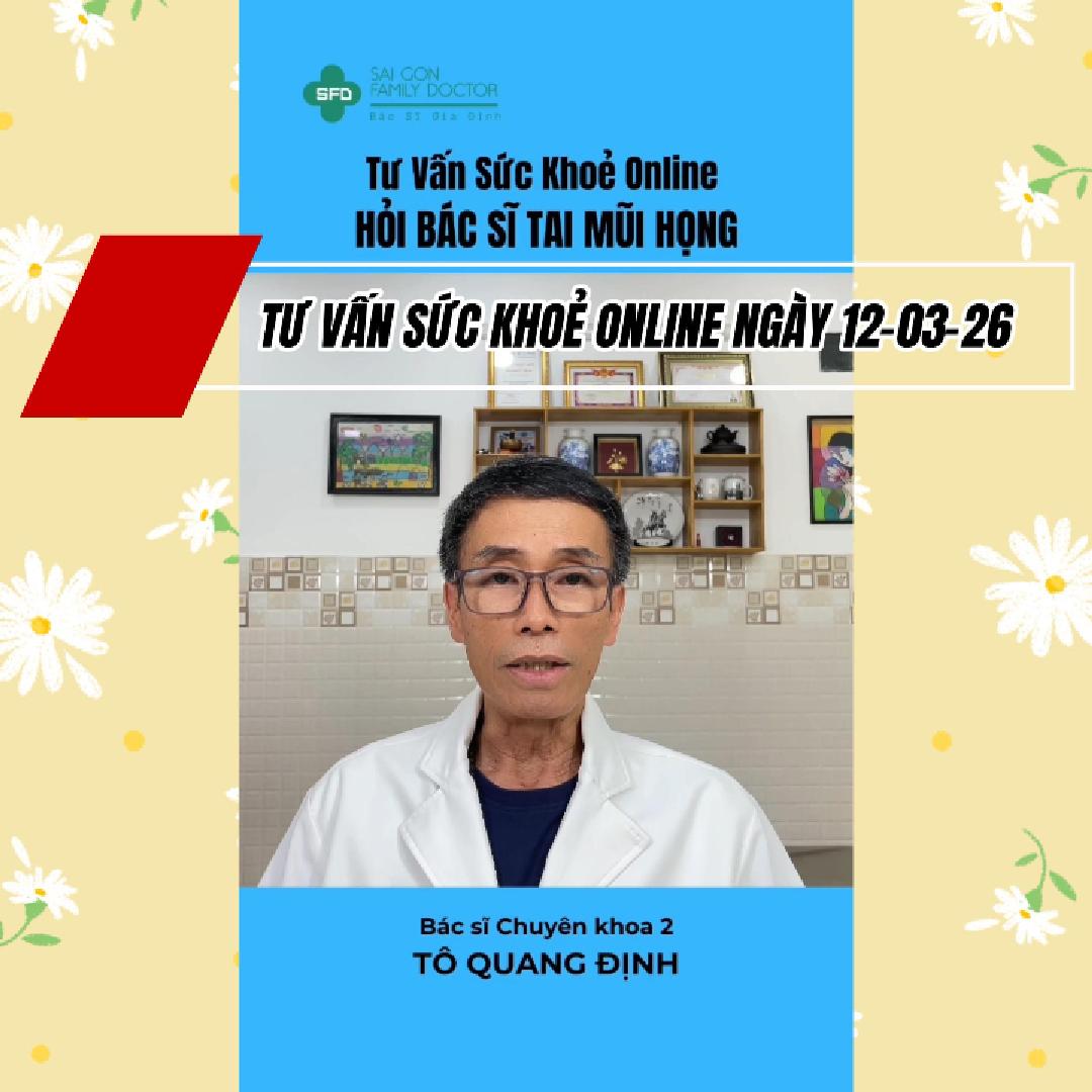 ❇️Chương trình Tư Vấn Sức Khoẻ Online của Phòng Khám Bác Sĩ Gia Đình Sài Gòn do Bác Sĩ Chuyên Khoa 2 Tô Quang Định Người sáng lập kiêm Giám Đốc Y Khoa phụ trách. Bác Sĩ Tô Quang Định sẽ trả lời các câu hỏi của quý anh chị đang online về các bệnh lý của Tai, của Mũi, của Họng và các bệnh thuộc chuyên khoa khác nhưng có liên quan đến chuyên khoa tai mũi họng.
